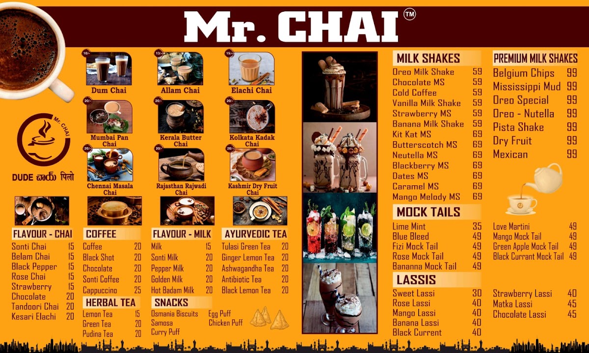 Welcome to Mr.CHAI, a charming café nestled in the heart of Gudivada, Andhra Pradesh. Located on Small Sivalayam Road, Mr.CHAI is your go-to spot for a delightful culinary experience. The menu offers a fantastic range of beverages, with coffee selections starting as low as ₹20. Notably, their Sonti Coffee and Cappuccino are crowd favorites.